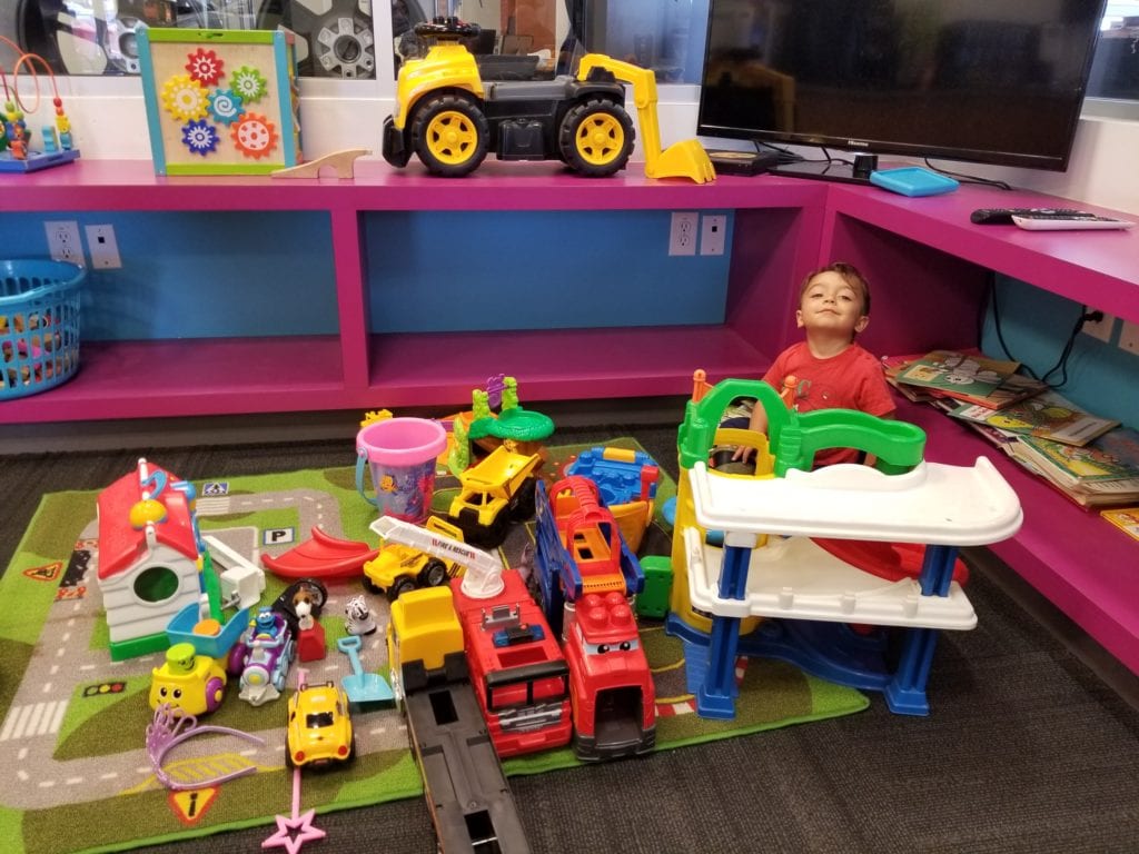 2. Play Area! I am not suggesting there needs to be a whole indoor playground but any small space with a few toys, colouring books or anything to entertain the little ones. This is especially helpful in places where a parent may be for an extended period of time. I recently when to Go Nissan North for an oil change. They have a great “Kids Corner”.  After an hour of playing with the toys, my son didn’t want to leave.